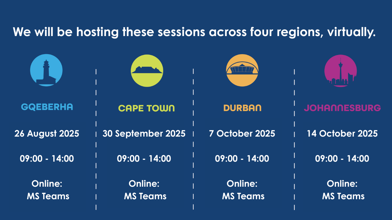 The MICT SETA will be hosting its annual 2025 Stakeholder Roadshows in four regions across the country. The MICT SETA cordially invites all stakeholders, including Employers, Skills Development Providers, and other interested parties, who operate within the media and ICT sub-sectors to attend these informative sessions.